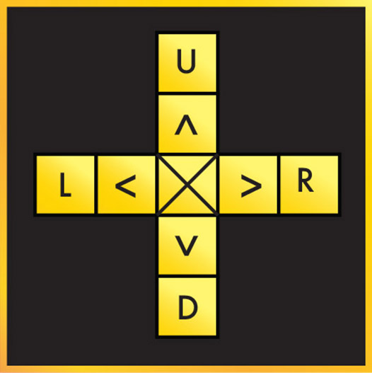 up (Λ) = U down (V) = D left (<) = L right (>) = R